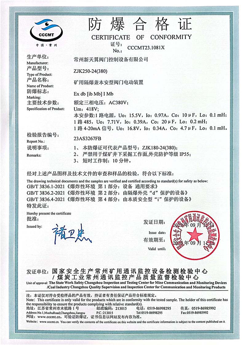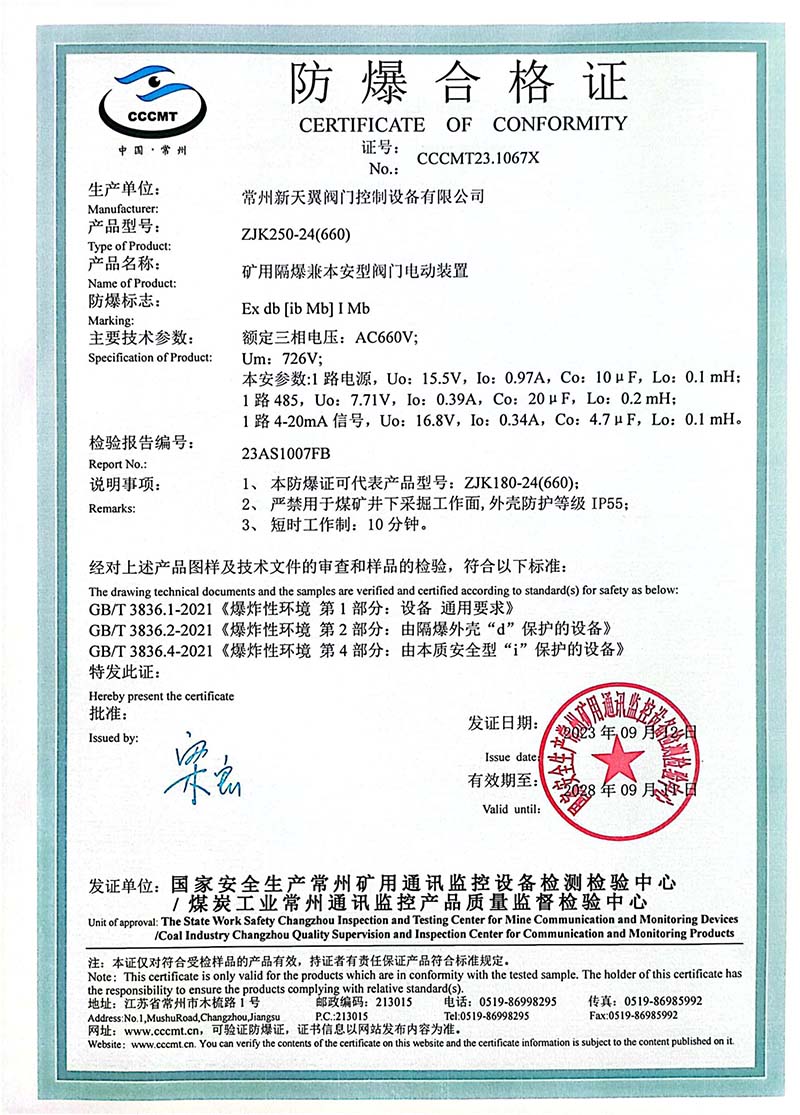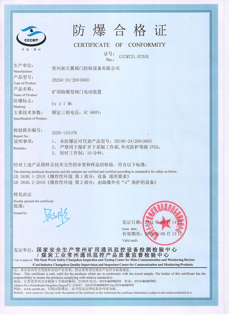 ZB20-24 200(660) 防爆合格證