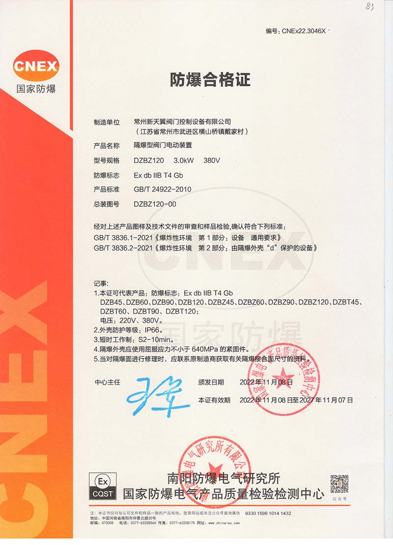 ZB120-24 200(660) 防爆合格證